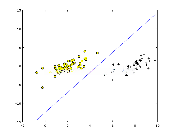 b1 = b - Ei - y(i) * ( alphas(i) - alpha_i_old) * K( i, i ) ...