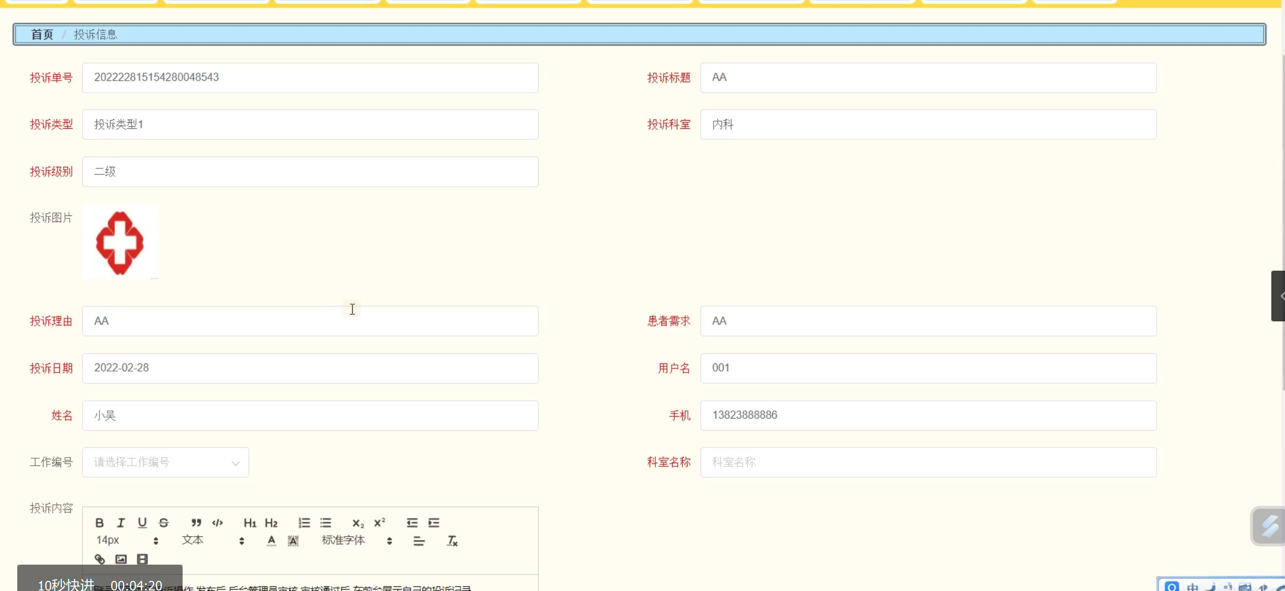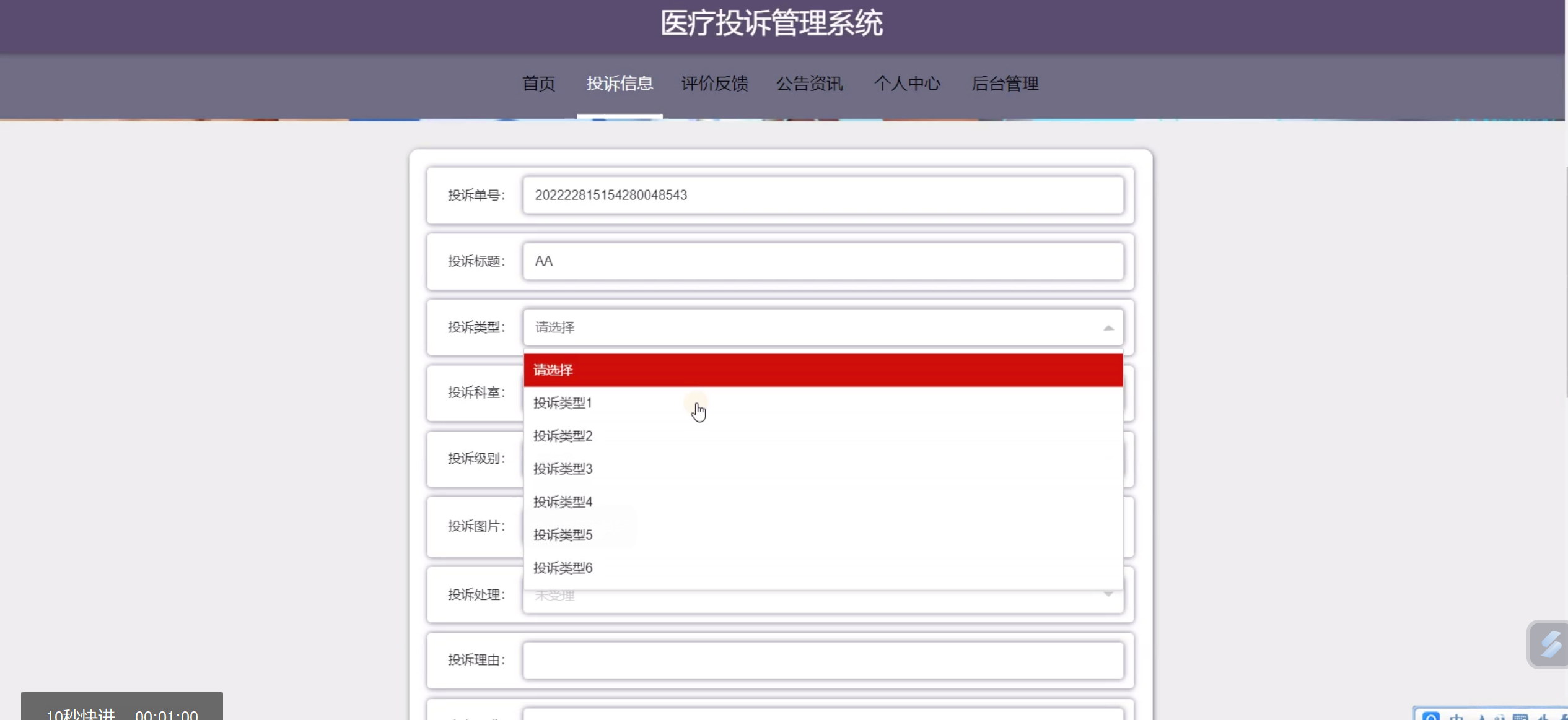 ssm+java医疗投诉管理系统3q52w(程序+lw+源码+远程部署)