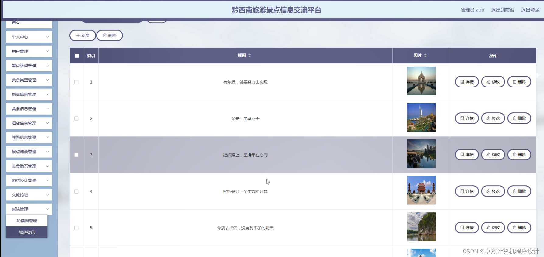 综上所述,开发一个黔西南旅游景点信息交流平台不仅可以满足游客和旅游从业者的需求,促进当地旅游业的发展,还具有重要的社会价值和教育意义。通过该系统的实现,可以推动黔西南旅游资源的整合和优化,同时也为学生提供了一个宝贵的学习和实践平台。