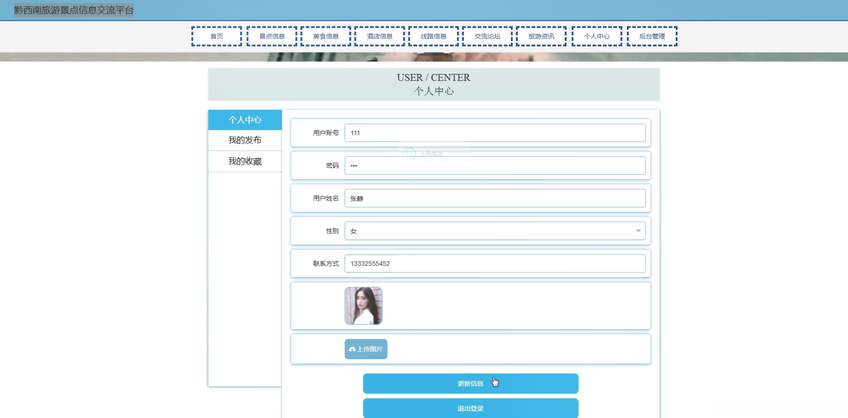 对于游客而言,黔西南旅游景点信息交流平台提供了一个便捷的获取旅游信息的途径。用户可以通过系统查看各类景点的介绍、图片、游玩攻略等信息,帮助规划行程。同时,系统还可以提供在线咨询、旅游路线推荐等服务,提升游客的旅游体验。