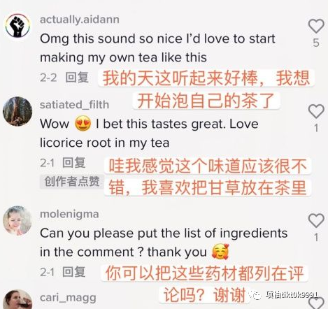 然而对于外国网友而言,则是一个他们未曾深入接触过的领域,在此之前他们对其的认知非常有限。对此产生了浓厚的兴趣,并且纷纷参与讨论;随着时间推移逐渐沉迷于开始泡制养生茶的过程。