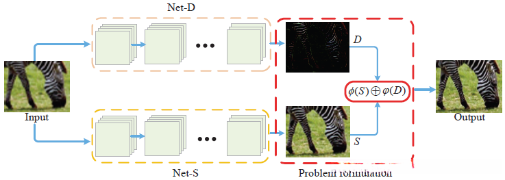 DualCNN由两部分组成:结构恢复部分(Net-S)和细节恢复部分(Net-D)