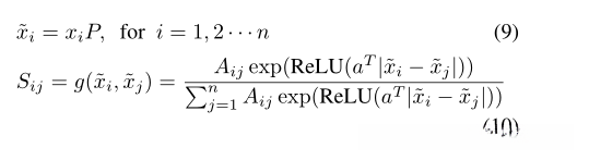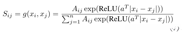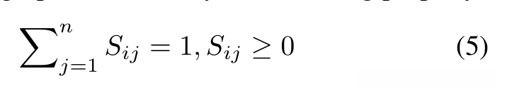 其中ReLU(·)=max(0,·)是一个激活函数,它保证Sij的非负性。在S的每一行上的上述softmax操作的作用是保证学习图S能够满足以下性质: