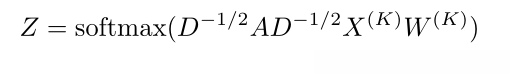 是激活函数,例如ReLU;D是度矩阵,A是输入的邻接矩阵,与度矩阵进行操作时归一化邻接矩阵(不会出现较大或者古怪的值),emmm,x是输入的节点特征,W是权重矩阵