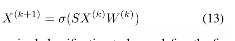 图学习层旨在为图卷积层提供最佳自适应图表示S。也就是说,在卷积层中,它基于图学习层返回的自适应邻居图S执行逐层传播规则,即: