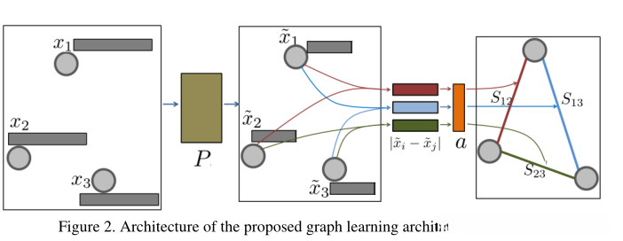 当输入数据X的维数p较大时,由于需要训练较长的权重向量a,上述g(xi,xj)的计算可能效率较低。此外,欧几里得距离的计算∥xi− X轴∥对于大维p,损失函数LGL中数据对之间是复杂的。为了解决这个问题,建议在低维子空间中进行图学习。通过由投影矩阵P参数化的单层低维嵌入网络来实现这一点P∈ Rp×d,d<p。按照如下方式进行最终的图形学习,