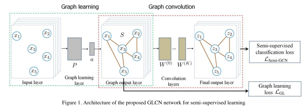 GLCN的主要思想是通过在统一的网络架构中同时集成图学习和图卷积来学习最适合于半监督学习的图CNN的最优图表示 。