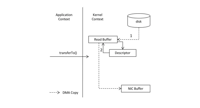 零拷贝技术利用DMA(Direct Memory Access)技术将文件内容复制至内核模式下的ReadBuffer中。然而,并非所有的数据都被复制至SocketBuffer中;相反地,在SocketBuffer中仅存储了包含数据位置和长度信息的文件描述符。DMA引擎直接将数据从内核模式传递给网络接口设备(协议引擎)。此外,在这一过程中,数据仅经历了两次复制便被传输至网络适配器,并且上下文切换次数也减少为两次。零拷贝特性和效果是在内核模式下实现的。