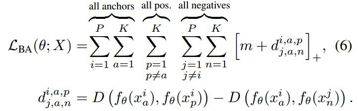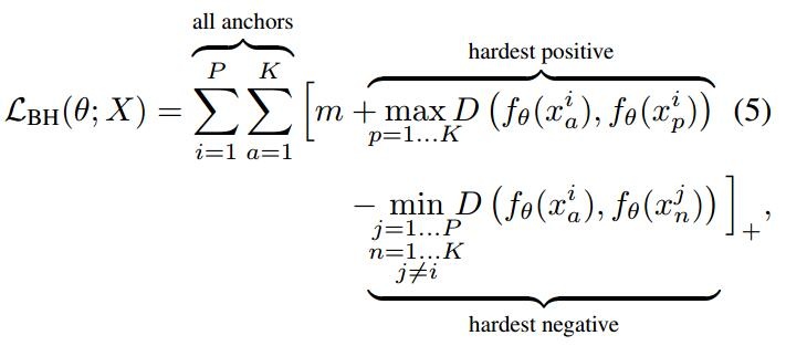 另外一种改进方法是将一个batch中的每一个positive pair都纳入考虑范围,在此基础上生成相应的triplets数量为PK(PK-K)(K-1)个