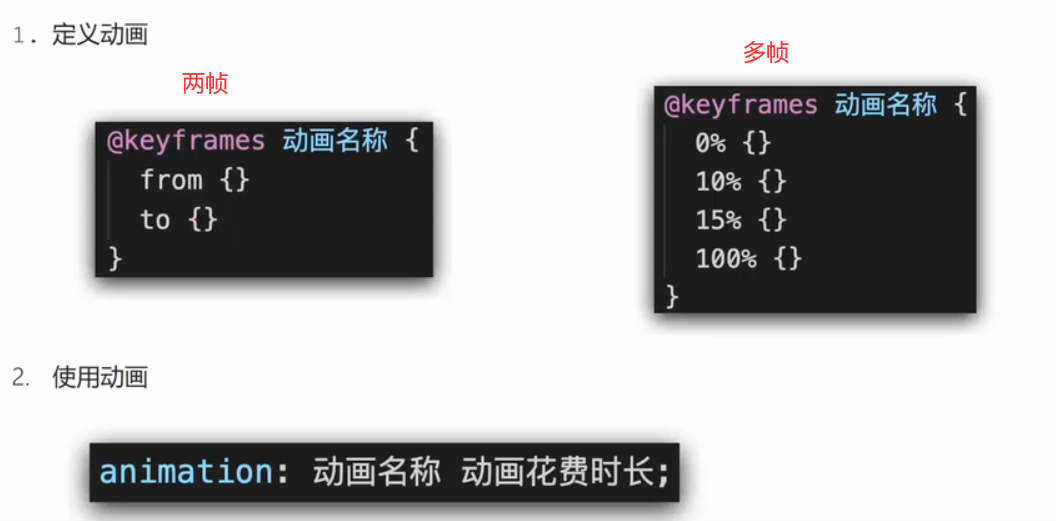 为每个动画分配名称及所需时长;无需按照特定顺序排列这些信息;当存在两个时间值时,默认情况下第一个表示动画持续时间;第二个参数则用于描述视频的延迟播放时间;完成后的状态信息中应删除重复的条目以及与动画方向相关的属性