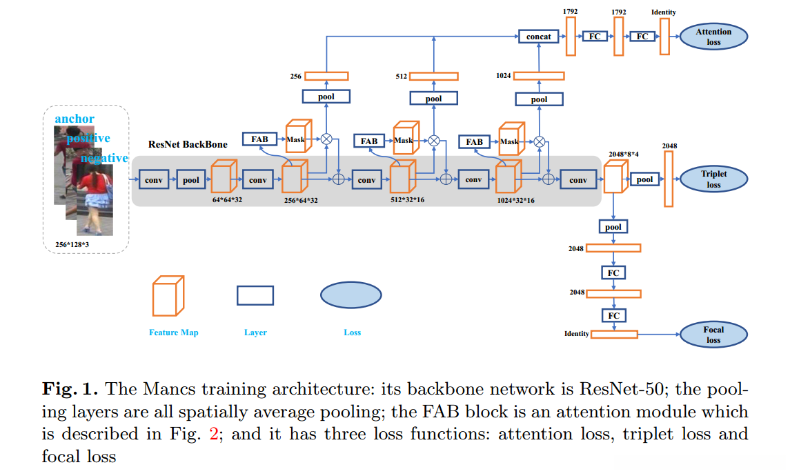 研究表明,在行人重识别领域,结合应用能够显著提升性能效果。具体而言,在Mancs模型架构设计中同时引入了辅助分类分支这一创新性设计。研究发现,在排序与区分任务过程中具有不可或缺的作用特征——即难度挖掘实例不仅能够帮助实现行人的精确识别目标,并且这种特性还可以自然延伸至其他相关任务领域——即进行类别区分的任务范畴之内。为此,在训练过程中应当特别关注那些难度较高的目标实例,并采取相应的优化策略可考虑增加负样本权重这一重要考量因素。针对密集物体检测场景中的挑战性问题——即难以分辨的对象类别间的细微差别——采用Focal Loss这一目标加权机制正符合这种复杂情况下的需求特点:通过赋予难度较大的目标更高重视程度从而能够在有限训练次数内实现更好的泛化性能表现效果