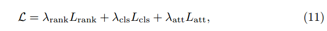 其中λrank,λcls和λatt为损失函数的权重。