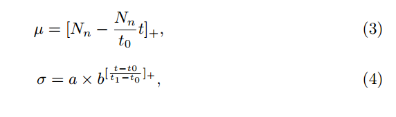 其次,在按照与锚点之间的距离从近到远对负样本进行排序的同时(即按照由难至易的顺序进行排列),我们随后为每个负样本分配一个被选中的概率值。这些概率值遵循均值为μ、标准差为σ的高斯分布