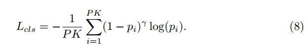 其中Sigmoid函数在下标ci处的值表示为取其第c维输出值。分类任务的目标损失函数可以被定义为以下形式:L_{\text{focal}}(y,\hat{y}) = \sum_{c=1}^{C} \frac{(1 - \hat{y}_c)^{\gamma}}{|\Gamma_c|} \cdot \text{CE}(y_c, \hat{y}_c)