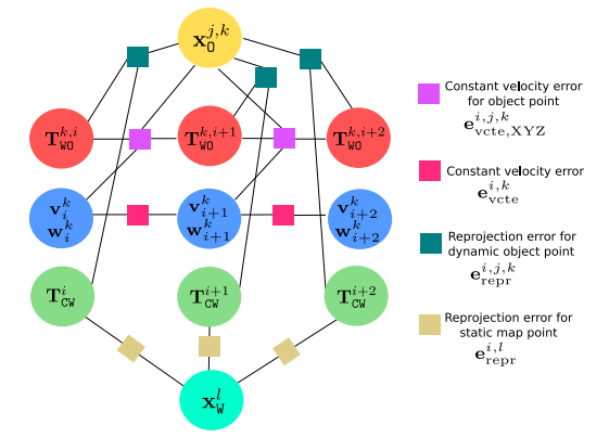 图4:具有动态物体的BA因子图表示。