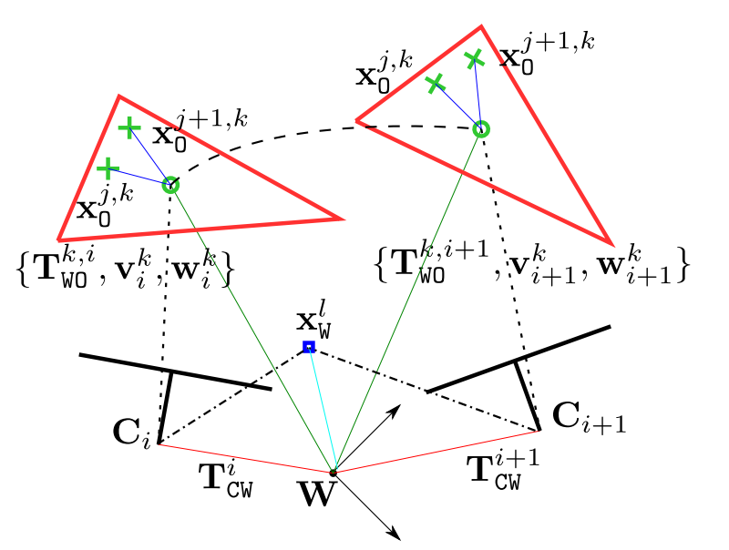 是SO\left(3\right)上的指数映射。 最后,在可优化的局部窗口C内提出了一个BA问题集合。其中每个相机i观测对应的一组地图点。