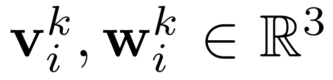是从时间 i 处物体 k 的线速度和角速度(