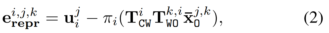 表示在相机 i 中观测的点j在其对象k的参考框中的三维齐次坐标