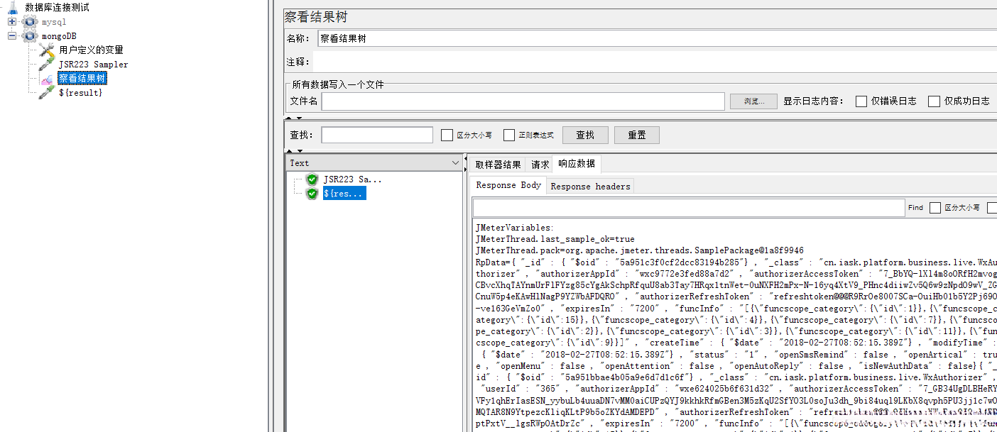 10.添加查看结果树,并运行脚本,得到的响应数据如下