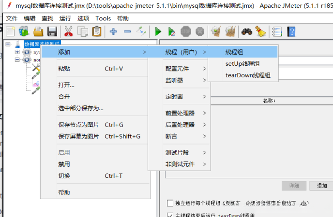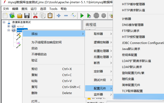 8.添加调试取样器【线程组->取样器->调试取样器】,查看查询的结果