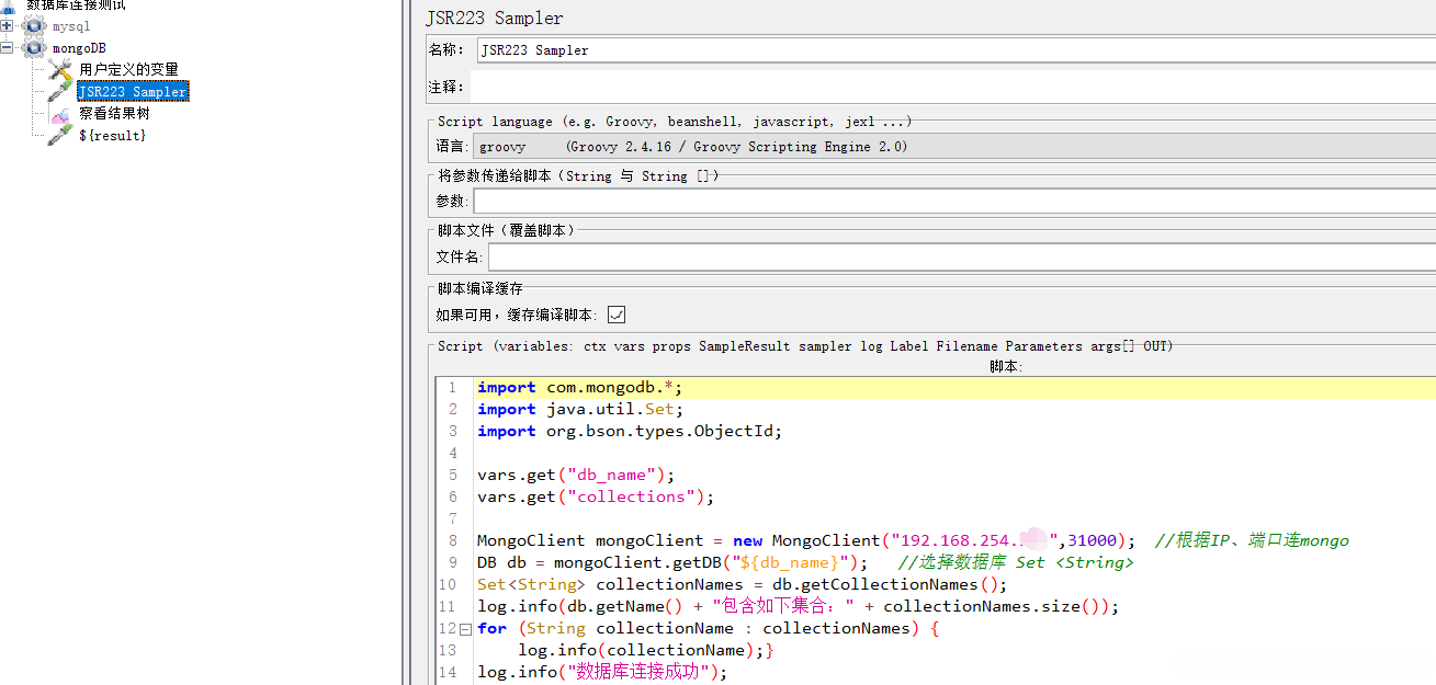 5.这里声明三个变量(数据库名、集合、查询条件):考虑到数据库地址和端口一般不会轻易变化……无需做变量设置