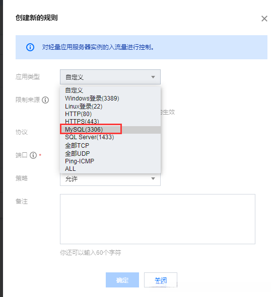 3.3没有开放的话(一般默认都没有开放3306端口),添加防火墙规则: