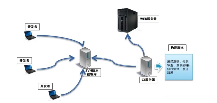 b. 一个代码存储库,即需要版本控制软件来保障代码的可维护性,同时作为构建过程的素材库,一般使用svn或者git。