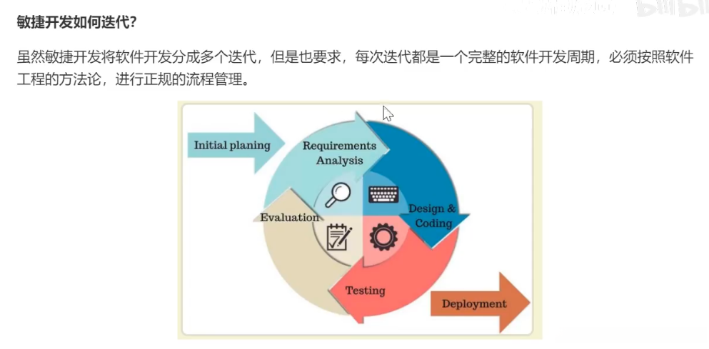 迭代开发,相对于传统大型传统项目的大周期(一年),迭代开发的开发过程是多个小周期,每次小开发都是相同流程。