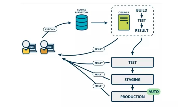 a. 一个自动构建过程,从检出代码,编译构建,运行测试,结果记录,测试同级等都是自动完成的,无需人工干预。