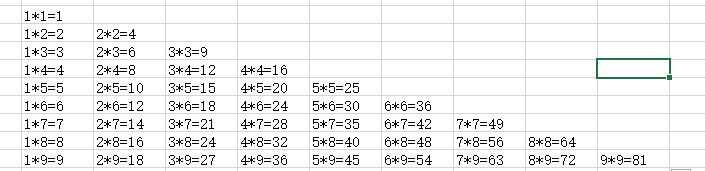 - 关于乘法口诀的展示非常有趣:首先第一项展示与列相关联, 第二个因数的展示与行相关联. 因此无需质疑, 如果说其计算结果 1×1=1 位于A1单元格的位置, 那么公式将被表示为 =COLUMN()&"*"&ROW()&"="&(COLUMN()*ROW())