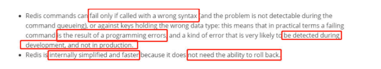 PS: 在Redis中进行事务操作时不具备回滚功能属于例外情况之一。 可参考官方详细解析 https://www.cnblogs.com/yaopengfei/p/13922295.html