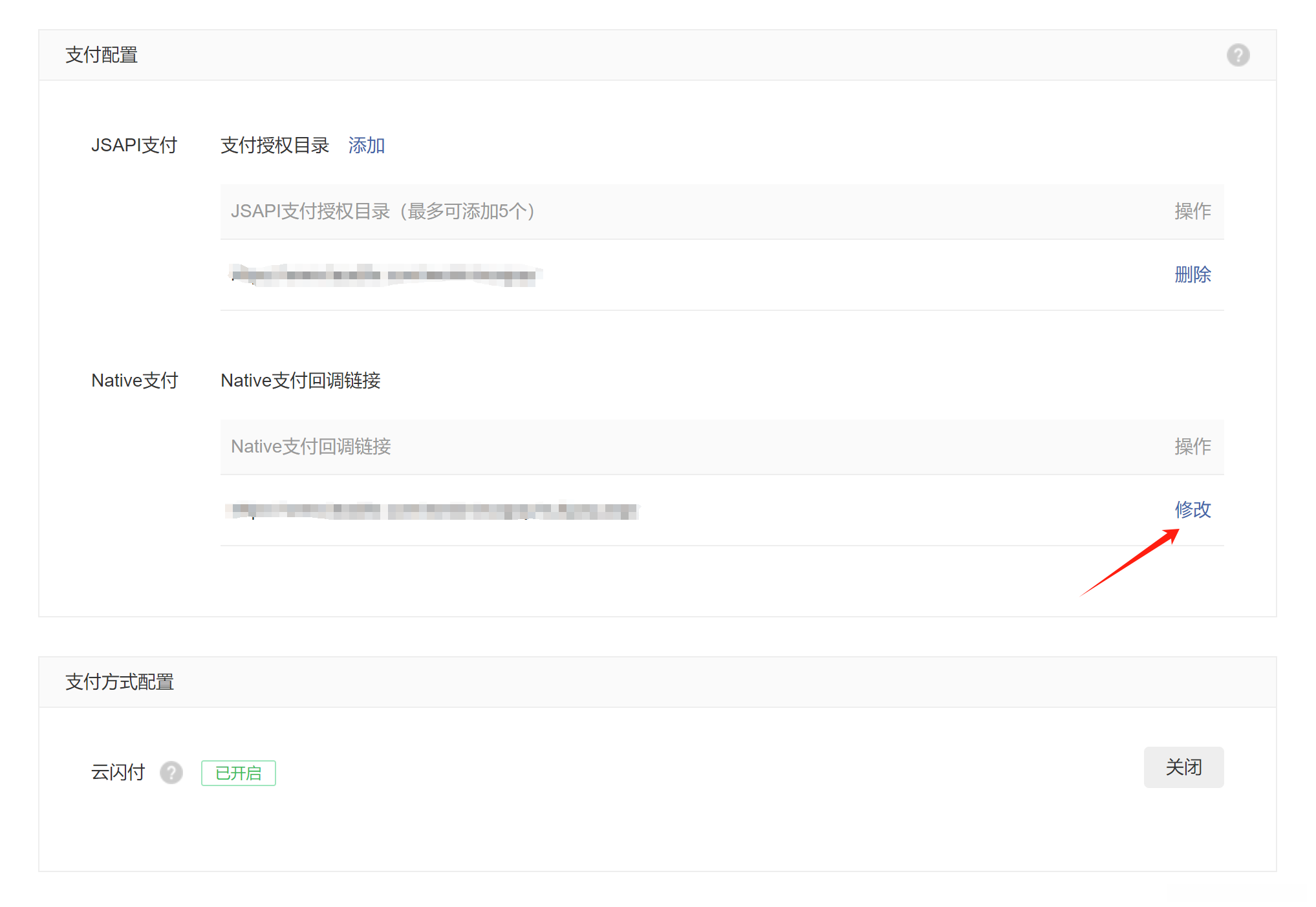 滚动界面至支付配置、Native支付回调链接,如下图所示: