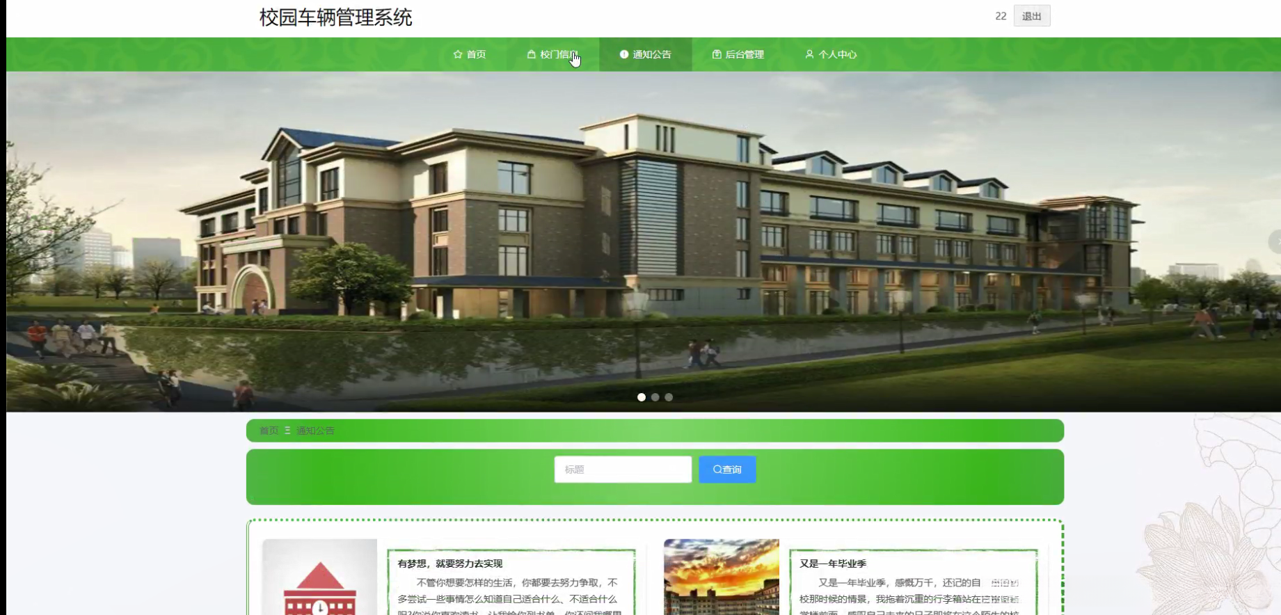本研究致力于开发并部署一套满足高校实际运营需求的校园车辆管理系统。该系统通过整合用户信息管理模块、校门出入管控模块以及停车场资源分配系统等核心功能组件,在进校预约系统的基础上构建起完整的车辆进出管理体系,并实现了校园车辆管理系统的全面自动化运行,并具备智能化水平。系统上线后将发挥其在提高操作效率与精确度方面的积极作用,并在改善整体交通秩序方面发挥重要作用,在切实提升师生日常通勤体验的同时也为学校的安全管理和教育资源优化配置提供了可靠的技术支撑。