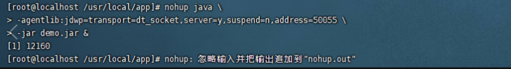 -agentlib:jdwp=transport=dt_socket,server=y,suspend=n,address=50055 ^