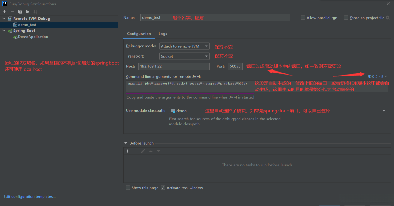 可以选择任意可用端口,并非必须与IDEA远程设置的一致。需要注意的是,在启动远程连接时必须与IDEA远程配置中的设置保持一致。对于详细的操作说明,请参考附录内容或自行查阅相关资料。