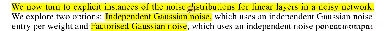 该神经网络为NoisyNets,其参数(权值和偏差)受到噪声参数函数的干扰。这些参数通过梯度下降法进行优化。