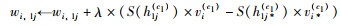式中:** h(i)=[0, 1]1× l , i ∈[1, m]. ** h(i)为第 i 个样本隐藏层激活后的 l 维输出值.