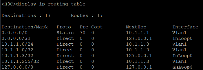 < H3C>display ip routing-table