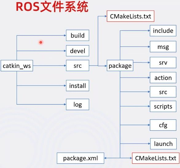 下图展示了ROS的文件系统。因为ROS主要运行在Linux系统下,而Linux将所有东西的看作是文件。