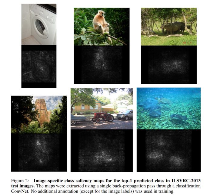 [14] Simonyan, Karen, Andrea Vedaldi, and Andrew Zisserman. "Deep inside convolutional networks: Visualising image classification models and saliency maps." arXiv preprint arXiv:1312.6034 (2013).