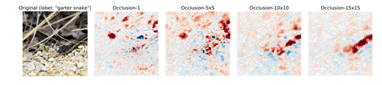 同时,通过可视化,我们也可以发现模型的缺陷,例如某些层学习到的特征杂乱无章,通过单独训练,可以提升模型效果。另外的方法也被采用,例如使用遮挡的方法,通过覆盖输入的某部分特征,分析输出和模型计算的中间参数,得到模型对被遮挡部分的敏感性,生成敏感性图,或者用梯度方法得到输出对于输入图像像素的梯度,生成梯度热力图。