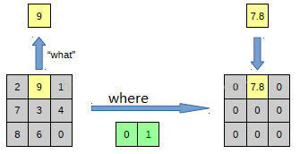 池化是不可逆的过程,然而可以通过记录池化过程中,最大激活值的坐标位置。然后在反池化的时候,只把池化过程中最大激活值所在的位置坐标的值激活,其它的值置为0,当然这个过程只是一种近似,因为在池化的过程中,除了最大值所在的位置,其它的值也是不为0的。