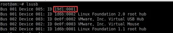 在本系统中 VID 代表制造商代码而 PID 则用于标识具体型号。无需额外安装 drivers 即可完成检测。因此,在无法正确读取 product codes 的情况下 建议首先执行 lsusb 命令获取相关信息。