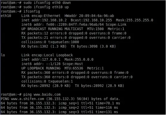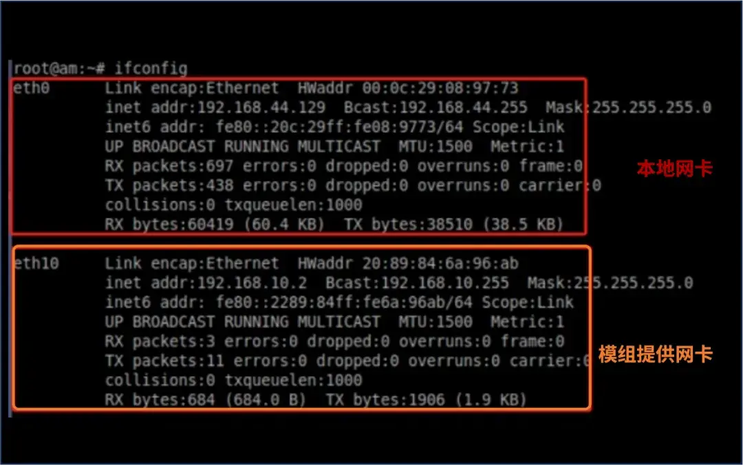 STEP 2:使能模组网卡 sudo ifconfig eth10 up