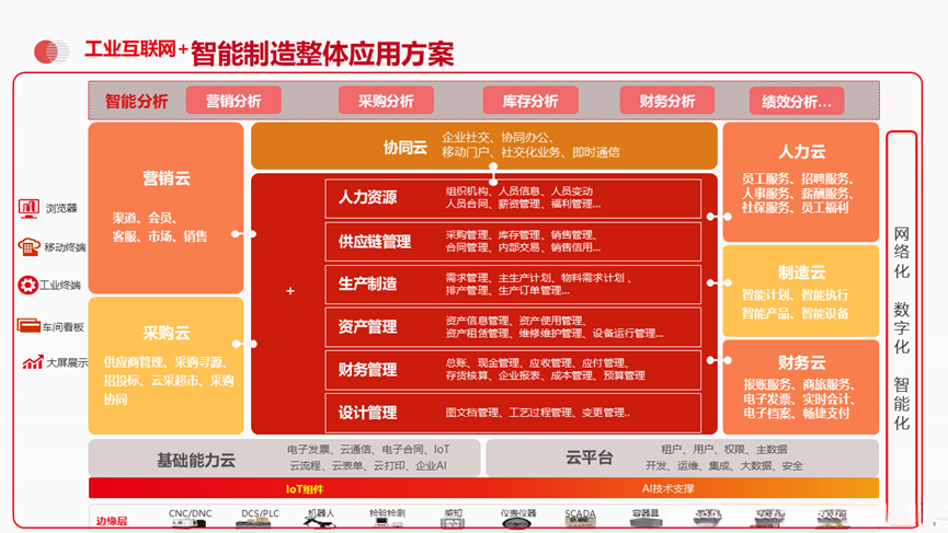 整体方案架构:通过融合云计算平台与边缘计算平台等技术手段,在涉及经营分析领域的多个维度进行深入整合与覆盖;其中包含智能化设计方案以及规划与调度方案等系列子模块;并基于此建立供应链优化策略至生产流程优化方案;同时构建质量管理与控制体系以及成本控制与优化策略;最终形成决策支持系统并完善服务管理体系