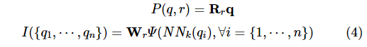 GQE专注于限制在一阶逻辑查询中的一类特定表达式,并特别针对仅包含存在量词与合取操作的知识库推理问题展开研究。该方法通过引入两个关键的几何运算符——投影算子P与交点算子I——来处理这类特殊的查询语义。具体而言,在知识库推理过程中,投影算子P的作用是将当前查询嵌入向量依据下一跳关系r投射到新的空间中;而交点算子I则通过聚合计算图中所有出边指向同一节点的顶点嵌入向量表示来模拟逻辑合取运算。需要注意的是,在这一过程中,P与I均依赖于公式(4)来进行具体计算