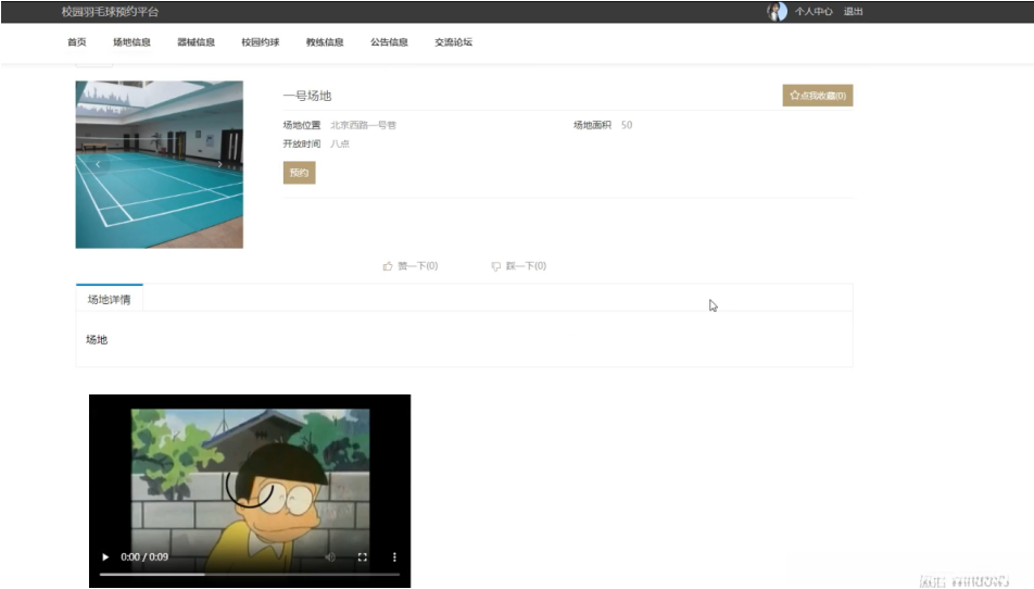 当用户点击"场地信息"按钮时,在相应的页面上可以查看以下内容:字段名称、地理位置信息等详细资料。除了这些基本操作外, 用户还可以进行预约或收藏等个性化操作; 如图5-4所示