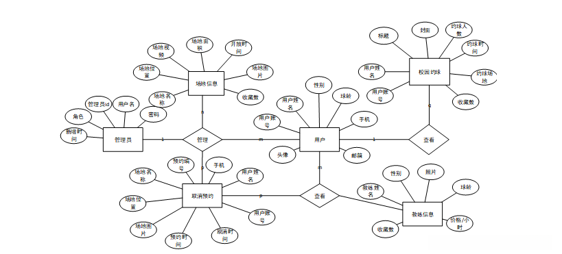 校园羽毛球预约平台总体E-R图如图4-6所示: