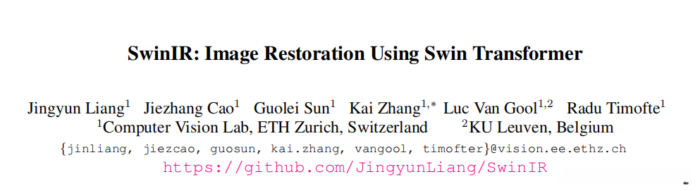 SwinIR: Image Restoration Using Swin Transformer 个人学习笔记