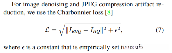 对于图像去噪和JPEG压缩伪影减少,我们使用夏波尼尔损失: